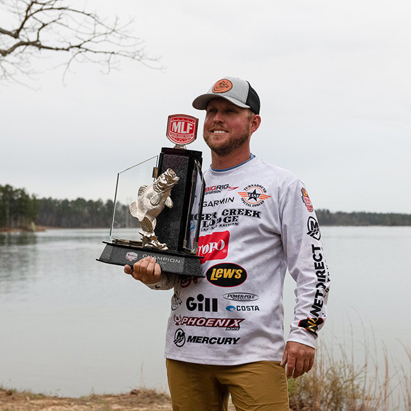 Dakota did most of the damage throwing a 3/16 oz. Strike King Tour Grade Round Jig Head with a KVD Magic 5” Ocho, working the bait shakey head style. He also had a few key fish coming on a very light jig head with a Blue Glimmer Baby Z-Too. He started off shallow trying to power fish but when that bite didn’t fire, he went and started running the lake. Dakota’s bag was a mix of two big largemouth and three 2 lbs. 5oz. spots. Dakota knew he needed around 16-17 lbs. to have a chance to win and at 2:45pm, he landed the fish that put him over the top. He landed a 4 lbs. 4 oz. largemouth which gave him a 2 lbs. 4 oz. upgrade to seal the deal. Dakota said, “It truly feels great to finally get that big win. It’s a blessing from God and He gets all the glory. I’ve worked my butt off for so long to get here and things finally worked out.”